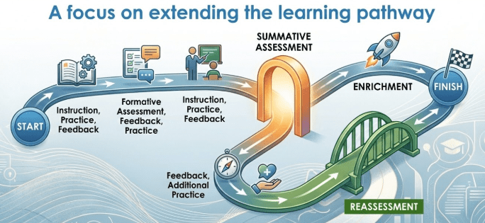 Figure 2: Extending the Learning Pathway with a Mastery Learning Reassessment System.