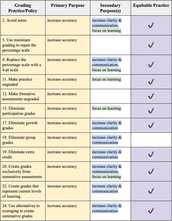 A total 12 of the 25 grading practices have a primary function of increasing grading accuracy. See the practices below, along with resources that further explain them.